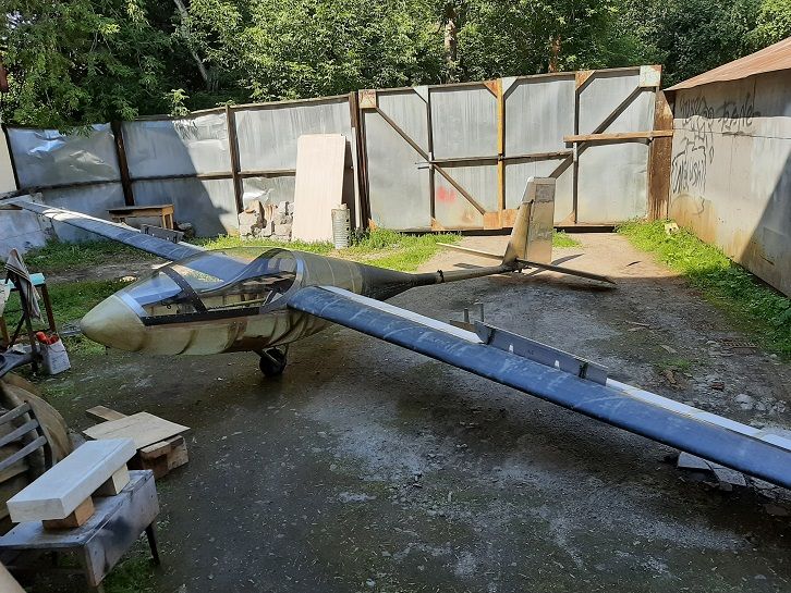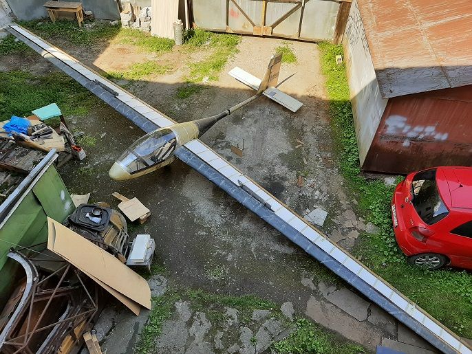 Красивый самолёт... На балку: однонаправленный уголь 380г/м +45-45 одной лентой в одну сторону, другой в другую сторону, в два слоя на ларите и обработать 60грд.С. - лучше растяжек...Взвесил планерок, 97 кгс. Но еще противофлаттерные грузы на все рули, шпаклевка, краска, еще кг 8-10. Движок 4 кг, 18 сил, но надо редуктор, винт, стойку. Грузы приделаю и буду пробовать машиной. Хлипкий зараза. Расчалки придется ставить, плохой аэродинамике не повредит, не заметит. А так, хвост отлетит.