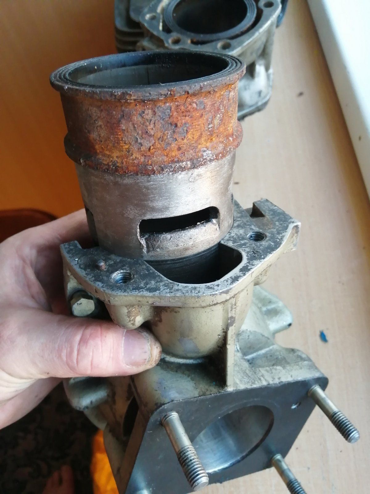 Амиго будь любезен замерь наружный диаметр гильзы там где водяная рубашка(на фото то место где ржавое, конечно ржавчину убери напильником чтоли) и то место где запрессовывается в рубашку чуть выше перепускных окон, мне для своей темы нужно. Я всё таки склонен оставить движок как есть водяной, с электропомпой из китая